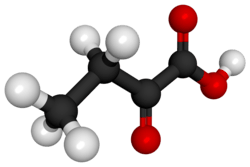 α-Ketobutyric acid is an organic compound with the formula CH3CH2C(O)CO2H. It is a colorless solid that melts just above room temperature. Its conjugate base α-ketobutyrate is the predominant form found in nature (near neutral pH). It results from the lysis of cystathionine. It is also one of the degradation products of threonine, produced by the catabolism of the amino acid by threonine dehydratase. It is also produced by the degradation of homocysteine and the metabolism of methionine.