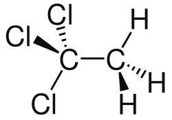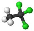 1,1,1-Trichloroethane, also known as methyl chloroform and chlorothene, is a chloroalkane with the chemical formula CH3CCl3. It is an isomer of 1,1,2-trichloroethane. A colourless and sweet-smelling liquid, it was once produced industrially in large quantities for use as a solvent.[7] It is regulated by the Montreal Protocol as an ozone-depleting substance, and as such, use has declined since 1996. Trichloroethane should not be confused with the similar-sounding trichloroethene which is also commonly used as a solvent.