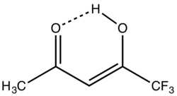 1,1,1-Trifluoroacetylacetone is the organofluorine compound with the formula CF3C(O)CH2C(O)CH3. It is a colorless liquid. Like other 1,3-diketones, it is used as a precursor to heterocycles, e.g. pyrazoles, and metal chelates.[1] It is prepared by condensation of esters of trifluoroacetic acid with acetone.[2]