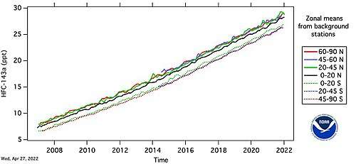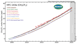 2. ^ a b "HFC-143a". NOAA Earth System Research Laboratories/Global Monitoring Division. Retrieved 2021-02-12.