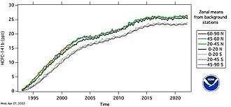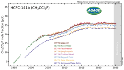 - ^ a b "HCFC-141b". NOAA Earth System Research Laboratories/Global Monitoring Division. Retrieved 2021-02-12.