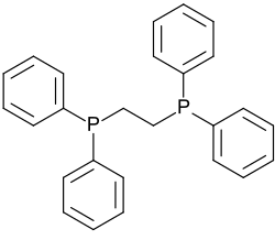 1,2-Bis(diphenylphosphino)ethane (dppe) is an organophosphorus compound with the formula (Ph2PCH2)2 (Ph = phenyl). It is a common symmetrical bidentate ligand in coordination chemistry. It is a white solid that is soluble in organic solvents.