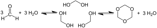 In the laboratory, trioxane is used as an anhydrous source of formaldehyde.[5]