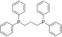 The diphosphine serves as a bidentate ligand forming six-membered C3P2M chelate ring with a natural bite angle of 91°.[1] For example, the complex dichloro(1,3-bis(diphenylphosphino)propane)nickel is prepared by combining equimolar portions of the ligand and nickel(II) chloride hexahydrate. This nickel complex serves as a catalyst for the Kumada coupling reaction.[2] Dppp is also used as a ligand for palladium(II) catalysts to co-polymerize carbon monoxide and ethylene to give polyketones.[3] Dppp can sometimes be used in palladium-catalyzed arylation under Heck reaction conditions to control regioselectivity.[4]
