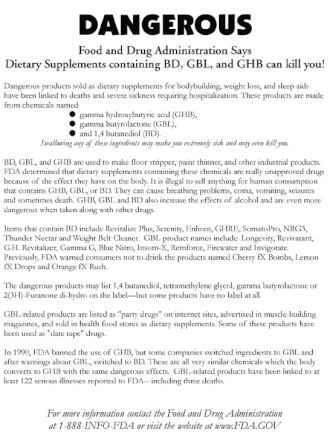 - ^ a b c Benzer, Theodore I.; Cameron, Scott; Russi, Christopher Scott (8 January 2007), Toxicity, Gamma-Hydroxybutyrate, eMedicine, retrieved 29 August 2009