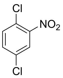 1,4-Dichloro-2-nitrobenzene is an organic compound with the formula C6H3Cl2NO2. One of several isomers of dichloronitrobenzene, it is a yellow solid that is insoluble in water. It is produced by nitration of 1,4-dichlorobenzene. It is a precursor to many derivatives of commercial interest. Hydrogenation gives 1,4-dichloroaniline. Nucleophiles displace the chloride adjacent to the nitro group: ammonia gives the aniline derivative, aqueous base gives the phenol derivative, and methoxide gives the anisole derivative. These compounds are respectively 4-chloro-2-nitroaniline, 4-chloro-2-nitrophenol, and 4-chloro-2-nitroanisole.[2]