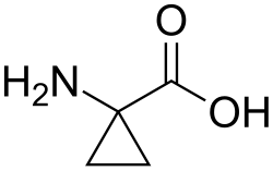 2. ^ Brackmann F, de Meijere A (November 2007). "Natural Occurrence, Syntheses, and Applications of Cyclopropyl-Group-Containing α-Amino Acids. 1. 1-Aminocyclopropanecarboxylic Acid and Other 2,3-Methanoamino Acids". Chemical Reviews. 107 (11): 4493–4537. doi:10.1021/cr078376j. PMID 17944521.