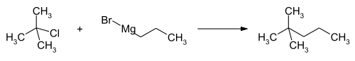 A method to produce high purity 2,2-dimethylpentane is to react the grignard reagent of n-propyl bromide (CH3CH2CH2MgBr) with tert-butyl chloride ((CH3)3CCl).[6] n-PrMgCl can be used instead of the bromide.[7]