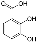 The colorless solid occurs naturally, being formed via the shikimate pathway. It is incorporated into various siderophores, which are molecules that strongly complex iron ions for absorption into bacteria. 2,3-DHB consists of a catechol group, which upon deprotonation binds iron centers very strongly, and the carboxylic acid group by which the ring attaches to various scaffolds through amide bonds. A famous high affinity siderophore is enterochelin, which contains three dihydroxybenzoyl substituents linked to the depsipeptide of serine.[5]
