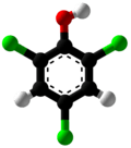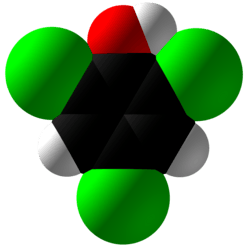 2,4,6-Trichlorophenol, also known as TCP, phenaclor, Dowicide 2S, Dowcide 2S, omal, is a chlorinated phenol that has been used as a fungicide, herbicide, insecticide, antiseptic,[3] defoliant, and glue preservative.[4] It is a clear to yellowish crystalline solid with a strong, phenolic odor. It decomposes on heating to produce toxic and corrosive fumes including hydrogen chloride and chlorine.