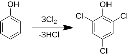 2,4,6-Trichlorophenol is produced industrially by the electrophilic chlorination of phenol:[5]