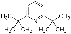 2,6-Di-tert-butylpyridine is an organic compound with the formula (Me3C)2C5H3N. This colourless, oily liquid is derived from pyridine by replacement of the two H atoms with tert-butyl groups. It is a hindered base.[1] For example, it can be protonated, but it does not form an adduct with boron trifluoride.