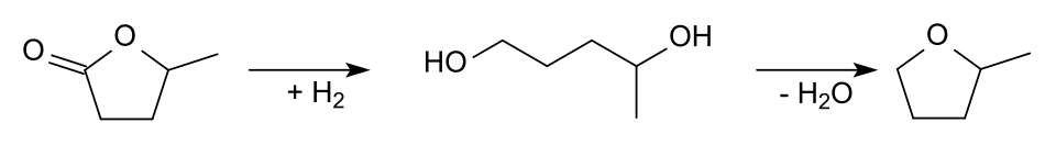 γ-Valerolactone can be hydrogenated to 1,4-pentanediol, which can then be dehydrated to give 2-methyltetrahydrofuran: