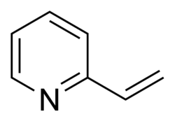 2-Vinylpyridine is an organic compound with the formula CH2CHC5H4N. It is a derivative of pyridine with a vinyl group in the 2-position, next to the nitrogen. It is a colorless liquid, although samples are often brown. It is used industrially as a precursor to specialty polymers and as an intermediate in the chemical, pharmaceutical, dye, and photo industries.[2] Vinylpyridine is sensitive to polymerization. It may be stabilized with a polymerisation inhibitor such as tert-butylcatechol. Owing to its tendency to polymerize, samples are typically refrigerated.