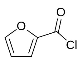 2-Furoyl chloride is an acyl chloride of furan. It takes the form of a corrosive liquid, which is more irritating to the eyes than benzoyl chloride.[1] 2-Furoyl chloride is a useful pharmaceutical intermediate and is used in the synthesis of mometasone furoate, an antiinflammatory prodrug used in the treatment of skin disorders, hay fever and asthma.[2]