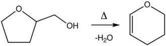 Dihydropyran is prepared by the dehydration of tetrahydrofurfuryl alcohol over alumina at 300–400 °C.[2] THFA is itself prepared from tetrahydro-2-furoic acid.
