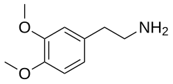 3,4-Dimethoxyphenethylamine (DMPEA or 3,4-DMPEA), also known as homoveratrylamine, 3-desmethoxymescaline, or O,O-dimethyldopamine, is a chemical compound of the phenethylamine family.[1] It is an analogue of the major human neurotransmitter dopamine where the 3- and 4-position hydroxy groups have been replaced with methoxy groups.[1] It is also closely related to mescaline (3,4,5-trimethoxyphenethylamine; 3,4,5-TMPEA) and to 3,4-dimethoxyamphetamine (3,4-DMA).[1]