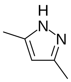 3,5-Dimethylpyrazole is an organic compound with the formula (CH3C)2CHN2H. It is one of several isomeric derivatives of pyrazole that contain two methyl substituents. The compound is unsymmetrical but the corresponding conjugate acid (pyrazolium) and conjugate base (pyrazolide) have C2v symmetry. It is a white solid that dissolves well in polar organic solvents.