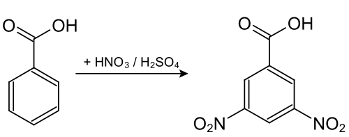 3,5-dinitrobenzoic acid is obtained from benzoic acid by the nitration reaction with nitric acid in the presence of concentrated sulfuric acid.[4][5]