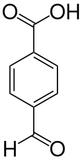 4-Carboxybenzaldehyde (CBA) is an organic compound with the formula OCHC6H4CO2H. It consists of a benzene ring substituted with both an aldehyde and a carboxylic acid, with these functional groups on opposite corners of the ring. This compound is formed in 0.5% yield as a byproduct in the production terephthalic acid from p-xylene. Since approximately 40,000,000 tons of terephthalic acid are produced per year, CBA is a relatively large scale industrial chemical.[2]