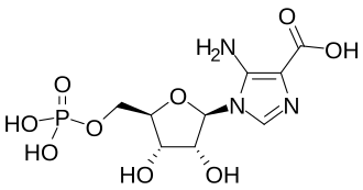 The same compound can be formed in a two-step pathway when the enzymes involved are 5-(carboxyamino)imidazole ribonucleotide synthase and 5-(carboxyamino)imidazole ribonucleotide mutase.[14]