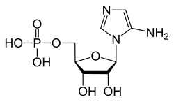 - ^ Bhat, Balkrishen; Groziak, Michael P.; Leonard, Nelson J. (1990). "Nonenzymatic synthesis and properties of 5-aminoimidazole ribonucleotide (AIR). Synthesis of specifically 15N-labeled 5-aminoimidazole ribonucleoside (AIRs) derivatives". Journal of the American Chemical Society. 112 (12): 4891–4897. doi:10.1021/ja00168a039.