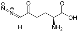 - ^ DeWald HA, Moore AM (August 1958). "6-Diazo-5-oxo-L-norleucine, a New Tumor-inhibitory Substance.1a Preparation of L-, D- and DL-Forms1b". Journal of the American Chemical Society. 80 (15): 3941–3945. doi:10.1021/ja01548a036.