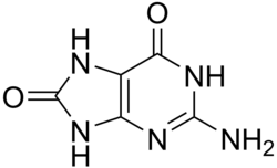 8-Oxoguanine (8-hydroxyguanine, 8-oxo-Gua, or OH8Gua) is one of the most common DNA lesions resulting from reactive oxygen species[2] modifying guanine, and can result in a mismatched pairing with adenine resulting in G to T and C to A substitutions in the genome.[3] In humans, it is primarily repaired by DNA glycosylase OGG1. It can be caused by ionizing radiation, in connection with oxidative metabolism.