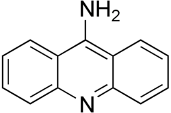 9-Aminoacridine is a synthetic dye used clinically as a topical antiseptic and experimentally as a mutagen, an intracellular pH indicator and a small molecule MALDI matrix.[1]
