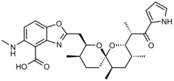 - ^ Wu Q, Liang J, Lin S, Zhou X, Bai L, Deng Z, Wang Z (March 2011). "Characterization of the biosynthesis gene cluster for the pyrrole polyether antibiotic calcimycin (A23187) in Streptomyces chartreusis NRRL 3882". Antimicrobial Agents and Chemotherapy. 55 (3): 974–982. doi:10.1128/AAC.01130-10. PMC 3067094. PMID 21173184.
