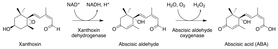 - ^ Milborrow, B.V. (2001). "The pathway of biosynthesis of abscisic acid in vascular plants: A review of the present state of knowledge of ABA biosynthesis". Journal of Experimental Botany. 52 (359): 1145–64. doi:10.1093/jexbot/52.359.1145. PMID 11432933.