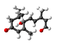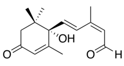 Abscisic aldehyde is an intermediate in the biosynthesis of the plant hormone abscisic acid.[1][2] It is produced by the dehydrogenation of xanthoxin by xanthoxin dehydrogenases, which is an NAD+ dependent short-chain dehydrogenase,[3] followed by selective oxidation by abscisic aldehyde oxygenase.[4]