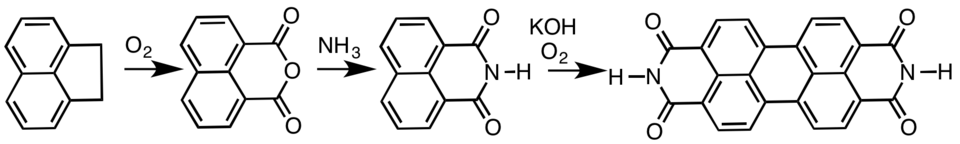 It is used on a large scale to prepare naphthalene dicarboxylic anhydride, which is a precursor to dyes and optical brighteners[3] (such as 1,4-bis(2-benzoxazolyl)naphthalene). Besides that, the anhydride is also the precursor to perylenetetracarboxylic dianhydride, precursor to several commercial pigments and dyes.[7][8]
