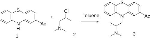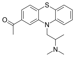 It is structurally related to the phenothiazine derivative veterinary drug acepromazine .