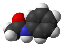 Acetanilide is the organic compound with the formula C6H5NHC(O)CH3. It is the N-acetylated derivative of aniline.[7] It is an odourless solid chemical of leaf or flake-like appearance. It is also known as N-phenylacetamide, acetanil, or acetanilid, and was formerly known by the trade name Antifebrin.