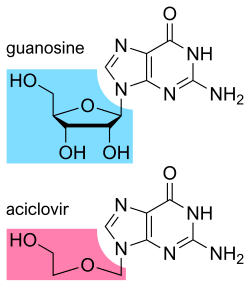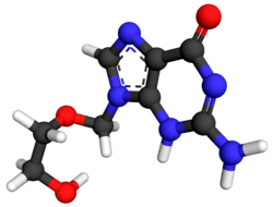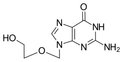 - ^ Elion GB, Furman PA, Fyfe JA, de Miranda P, Beauchamp L, Schaeffer HJ (December 1977). "Selectivity of action of an antiherpetic agent, 9-(2-hydroxyethoxymethyl) guanine". Proceedings of the National Academy of Sciences of the United States of America. 74 (12): 5716–5720. Bibcode:1977PNAS...74.5716E. doi:10.1073/pnas.74.12.5716. PMC 431864. PMID 202961.