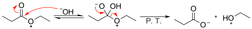 This mechanism is supported by isotope labeling experiments. When ethyl propionate with an oxygen-18-labeled ethoxy group is treated with sodium hydroxide (NaOH), the oxygen-18 label is completely absent from propionic acid and is found exclusively in the ethanol.[13]