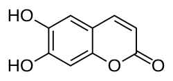 Aesculetin (also known as esculetin, 6,7-dihydroxycoumarin and cichorigenin) is a derivative of coumarin. It is a natural lactone that derives from the intramolecular cyclization of a cinnamic acid derivative.