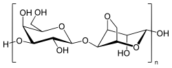 Agarose is a linear polymer with a molecular weight of about 120,000, consisting of alternating D-galactose and 3,6-anhydro-L-galactopyranose linked by α-(1→3) and β-(1→4) glycosidic bonds. The 3,6-anhydro-L-galactopyranose is an L-galactose with an anhydro bridge between the 3 and 6 positions, although some L-galactose units in the polymer may not contain the bridge. Some D-galactose and L-galactose units can be methylated, and pyruvate and sulfate are also found in small quantities.[5]