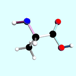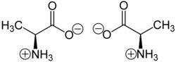(S)-Alanine (left) and (R)-alanine (right) in zwitterionic form at neutral pH