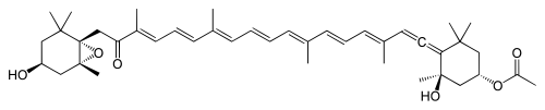 Numerous natural products contain the allene functional group. Noteworthy are the pigments fucoxanthin and peridinin. Little is known about the biosynthesis, although it is conjectured that they are often generated from alkyne precursors.[72]