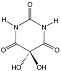 Alloxan, sometimes referred to as alloxan monohydrate, is an organic compound with the formula OC(NHCO)2C(OH)2. It is classified as a derivative of pyrimidine. The anhydrous derivative OC(NHCO)2CO is also known, as well as a dimeric derivative. These are some of the earliest known organic compounds. They exhibit a variety of biological activities.