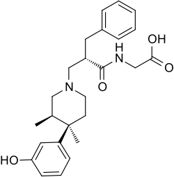- ^ Streicher JM, Bilsky EJ (December 2018). "Peripherally Acting μ-Opioid Receptor Antagonists for the Treatment of Opioid-Related Side Effects: Mechanism of Action and Clinical Implications". Journal of Pharmacy Practice. 31 (6): 658–669. doi:10.1177/0897190017732263. PMC 6291905. PMID 28946783.