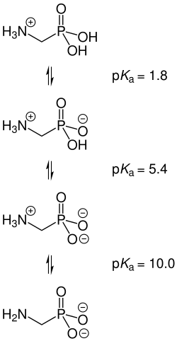 Aminomethylphosphonic acid (AMPA) is a aminophosphonate with a weak phosphonic acid group.