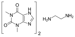 Aminophylline is a compound of the bronchodilator theophylline with ethylenediamine in 2:1 ratio. The ethylenediamine improves solubility, and the aminophylline is usually found as a dihydrate.[2]