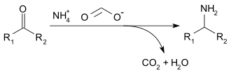 Ammonium formate can be used for reductive amination of aldehydes and ketones (Leuckart reaction), by the following reaction:[5]