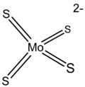 - ^ Coucouvanis, D (1998). "Syntheses, structures, and reactions of binary and tertiary thiomolydate complexes containing the (O)Mo(Sx) and (S)Mo(Sx) functional groups (x = 1, 2, 4)". Advances in Inorganic Chemistry. 45: 1–73. doi:10.1016/S0898-8838(08)60024-0. ISBN 978-0-12-023645-9.