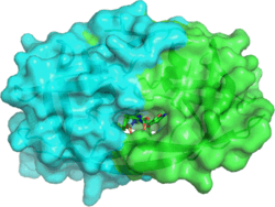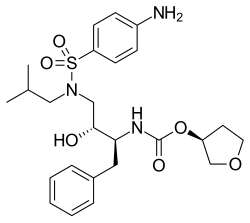 - ^ Shen CH, Wang YF, Kovalevsky AY, Harrison RW, Weber IT (September 2010). "Amprenavir complexes with HIV-1 protease and its drug-resistant mutants altering hydrophobic clusters". The FEBS Journal. 277 (18): 3699–714. doi:10.1111/j.1742-4658.2010.07771.x. PMC 2975871. PMID 20695887.