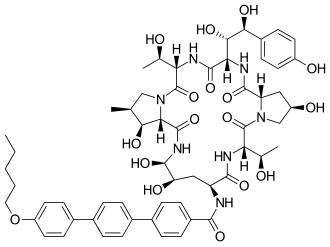 | Other names | LY303366, (4R,5S)-4,5-Dihydroxy-N2-[[4''-(pentyloxy)-p-terphenyl-4-yl]carbonyl]-L-ornithyl-L-threonyl-trans-4-hydroxy-L-prolyl-(S)-4-hydroxy-4-(p-hydroxyphenyl)-L-threonyl-L-threonyl-(3S,4S)-3-hydroxy-4-methyl-L-proline cyclic (6→1)-peptide[1] 1-[(4R,5R)-4,5-Dihydroxy-N2-[[4''-(pentyloxy)[1',1':4',1''-terphenyl]-4-yl]carbonyl]-L-ornithine]echinocandin B[2] |