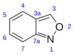 Anthranil (2,1-benzisoxazole) is an organic compound with a molecular formula C7H5NO, which features a fused benzene-isoxazole bicyclic ring structure. It is an isomer of the more common compounds benzoxazole and benzisoxazole, which have their oxygen atoms located in the 1-position. The locations of the heteroatoms in anthranil results in disrupted aromaticity, making it by far the least stable of the 3 structural isomers.[2]